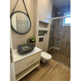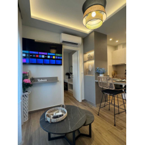 Μία ακόμα εξαιρετική επιλογή για όμορφές διακοπές. Πρόκειται για ένα σύγχρονο με νέο σχεδιασμό, διαμέρισμα με ασανσέρ και θέα στον κεντρικό δρόμο της Παραλίας Κατερίνης. Και σ’ αυτή την περίπτωση κάνουμε λόγο για έναν πλήρως ανακαινισμένο και ανανεωμένο χώρο με πολλές παροχές ο οποίος μπορεί να φιλοξενήσει άνετα μέχρι και έξι (6) ανθρώπους. Προσφέρεται και αυτός ως ιδανική επιλογή για μία οικογένεια ή για μία δεμένη παρέα έξι (6) ατόμων. Τα πλεονεκτήματα της τοποθεσίας είναι πολλά καθώς έχει σούπερ μαρκετ στο ισόγειο του κτιρίου και (LIDL) στα 150 μέτρα, απέχει από τη θάλασσα μόλις 100 μέτρα ενώ το φαρμακείο βρίσκεται σε απόσταση 30 μέτρων. Επίσης η στάση λεωφορείου βρίσκεται στα 30 μέτρα, το κέντρο (εκκλησία) στα 100 μέτρα, η περιοχή των ταξί στα 50 μέτρα και οι Hellenikon Suites βρίσκονται στα 100 μέτρα. Η πόλη της Κατερίνης η οποία είναι η πρωτεύουσα του νομού Πιερίας βρίσκεται στα 7 χιλιόμετρα μακρύτερα με συχνά δρομολόγια λεωφορείων. Το αεροδρόμιο «Μακεδονία» απέχει μόλις 100 χιλιόμετρα ενώ μία επίσκεψη στην πανέμορφή πόλη της Θεσσαλονίκης αφορά μία απόσταση περίπου 70 χιλιομέτρων. Σαφώς και η επίσκεψη αυτή μπορεί να συνδυαστεί και με “shopping” στο “One Salonica Outlet Mall.